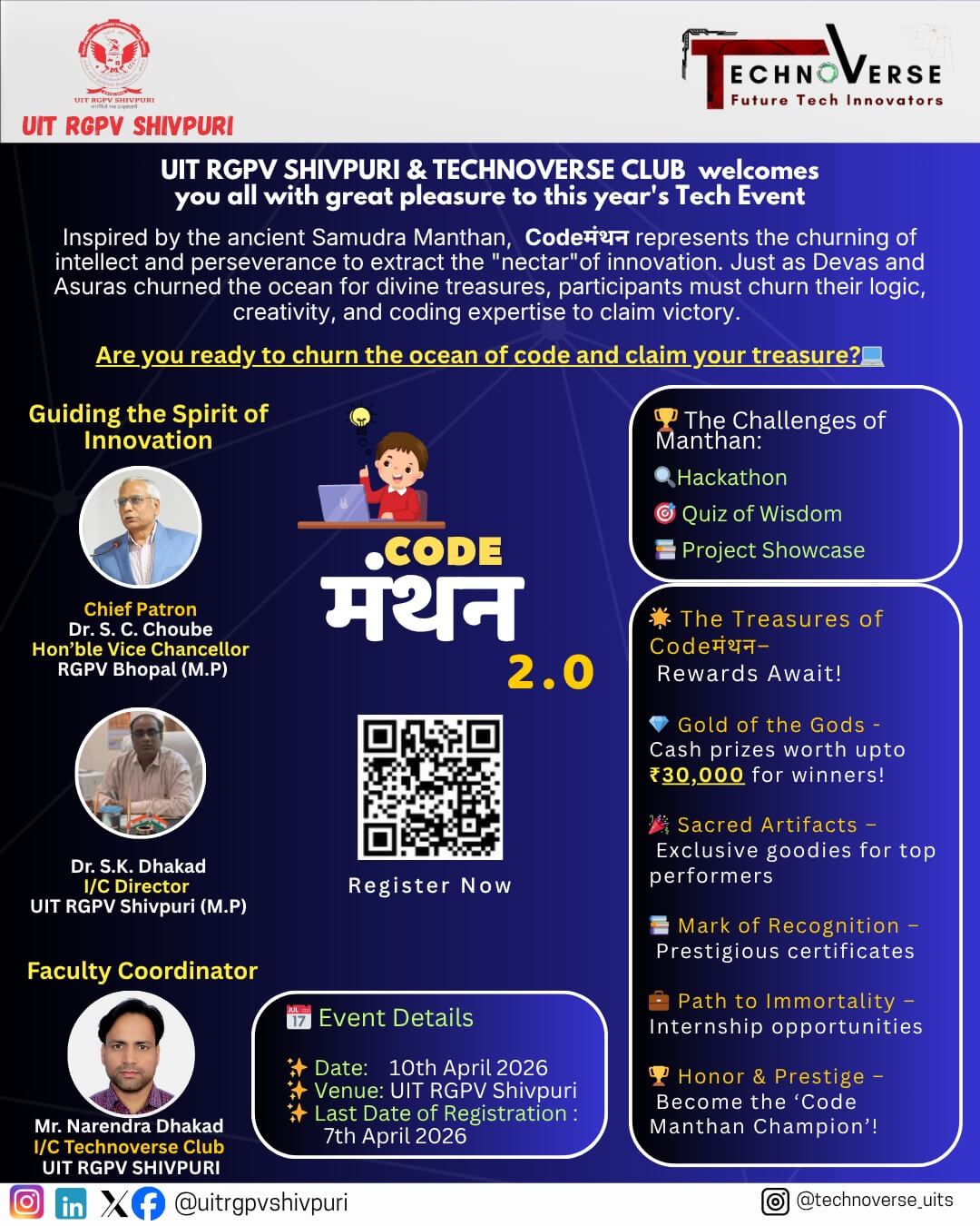 As per the directives of Government of Madhya Pradesh, University Institute of Technology, Shivpuri, a constituent institute of Rajiv Gandhi Proudyogiki Vishwavidyalaya, Bhopal is established in 2020. The institution presently offers undergraduate programmes in Civil Engineering, Computer Science Engineering, Electrical and Electronics Engineering and Mechanical Engineering with an intake of 60 students each.